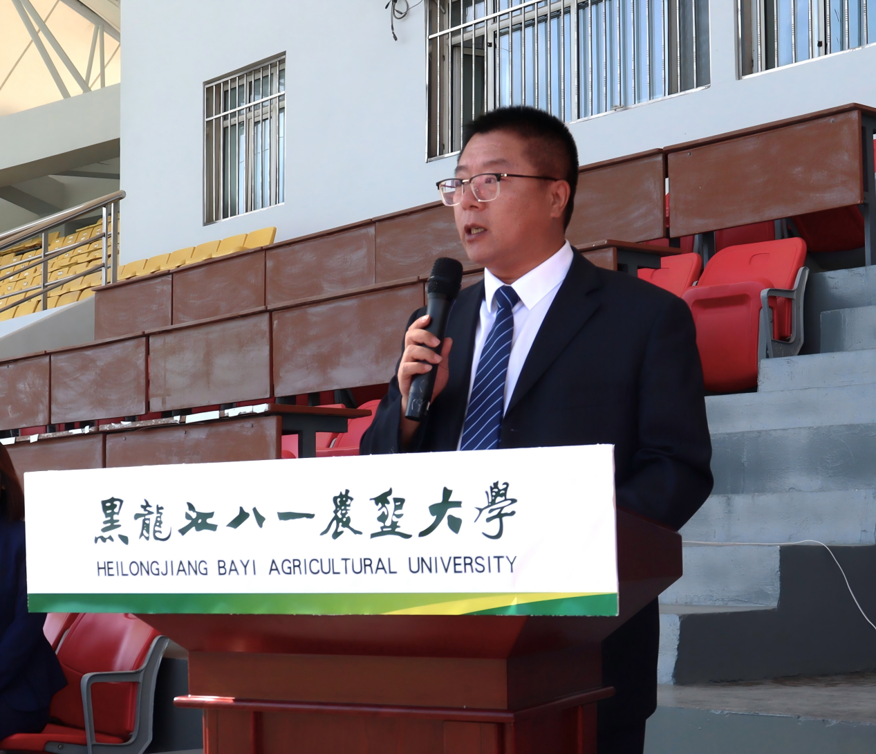 2025级动物科学专业的魏楷源作为新生代表说出了青春誓言,将秉承“困知勉行、积厚成器”的校训,以谦逊之心求学,以坚韧之志探索,以责任之心担当,传承北大荒精神,迎浪潮而上,搏击万里长空!