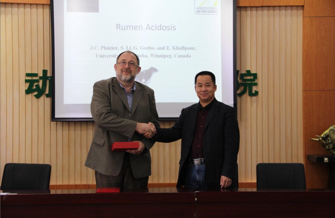 5月15日,应U8国际官网邀请,加拿大曼尼托巴大学动物科学系J.C. Plaizier教授为公司师生带来了一场有关瘤胃酸中毒研究的报告。