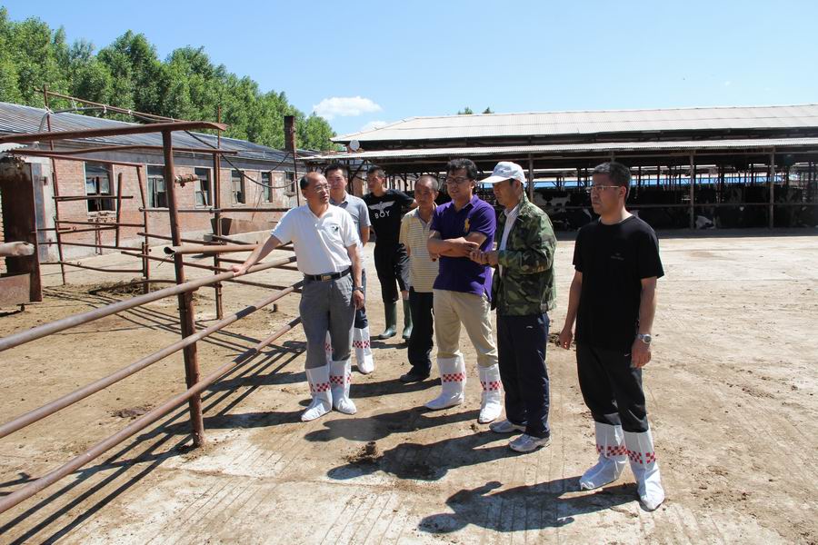 2015年7月4日,由张爱忠副经理带队,奶牛养殖专家曲永利教授、奶牛临床医学专家鲁文赓副教授及韩云胜、于洪江、叶明三名研究生来到U8国际官网研究生创新实践基地——青冈县山东屯荷斯坦奶牛繁育场,与企业负责人及技术人员进行沟通和交流。在参观了奶牛养殖基地之后进行了座谈,奶牛场顾问侯显志先生和奶牛场场长刘同军先生及技术人员详细地介绍了奶牛场的发展历程、企业现状以及需解决的技术问题等,曲永利教授、鲁文赓副教授就相关的技术问题与企业领导和技术人员进行了交流,研究生同学也发表了各自的看法。通过沟通和交流,加深了双方的相互了解,增进了友谊,并形成了继续合作与共同发展的共识。侯显志先生表示将继续支持和帮助U8国际官网公司产品工作,希望有更多的研究生到基地开展科学研究和实践活动。