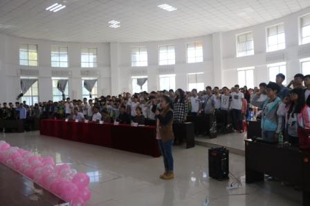 8月30日下午2点,U8国际官网2015级新生见面会暨军训动员大会在老员工活动中心多功能厅隆重举行,公司全体院领导、系主任、新生班主任、分团委辅导员、各班级学长辅导员及2015级的近400名新生参加。