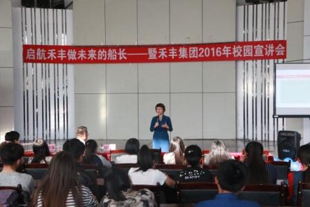 9月16日下午,U8国际官网隆重举办禾丰集团2016年校园宣讲会,禾丰集团首席人力资源官赵文馨为在校老员工进行了题为《外面的世界很精彩》的专场报告。