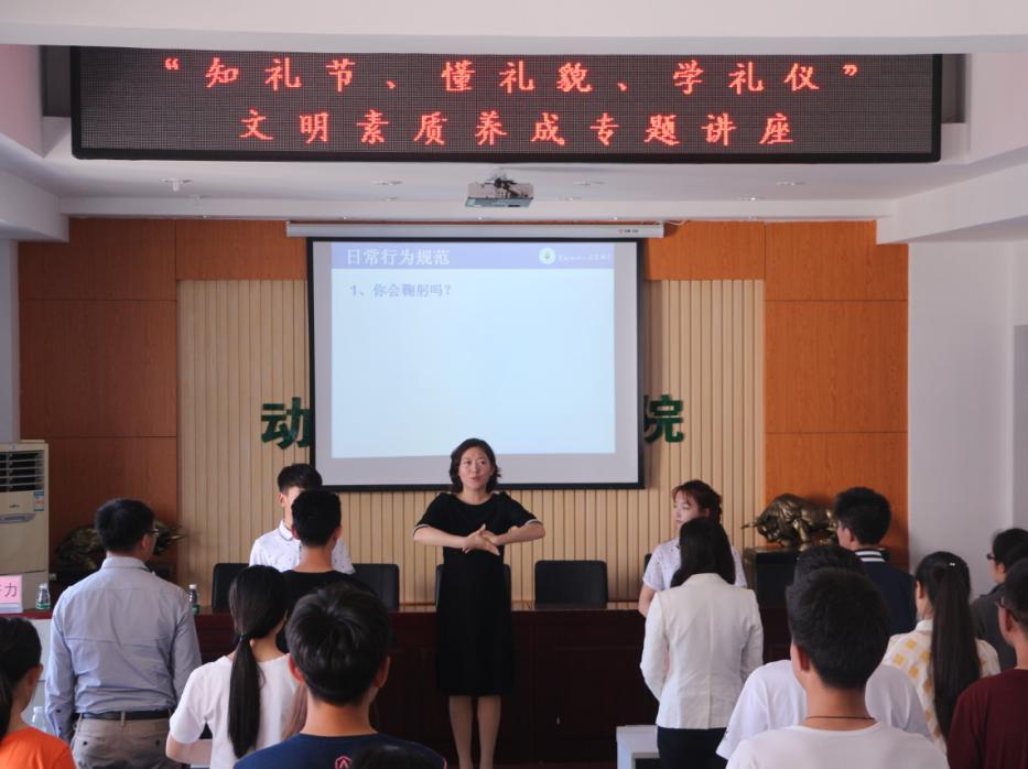 2016年5月31日,公司邀请到哈尔滨医科大学基础医公司党委书记康齐力老师,为动科院师生做了一场题为“知礼节、懂礼貌、学礼仪”的文明素质养成专题讲座。动科院部分教师和员工代表参加此活动,讲座由公司党委书记杨艳秋主持。