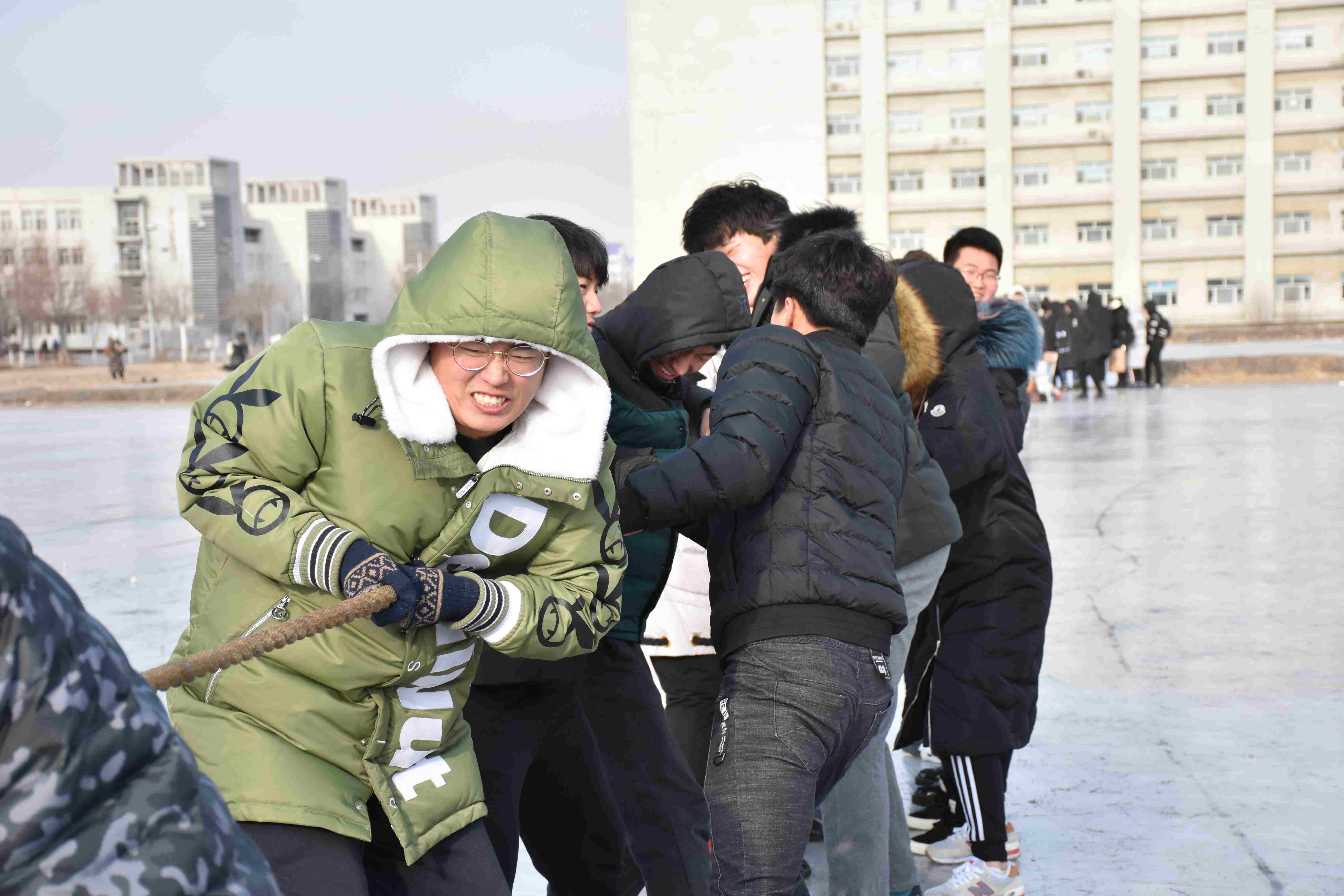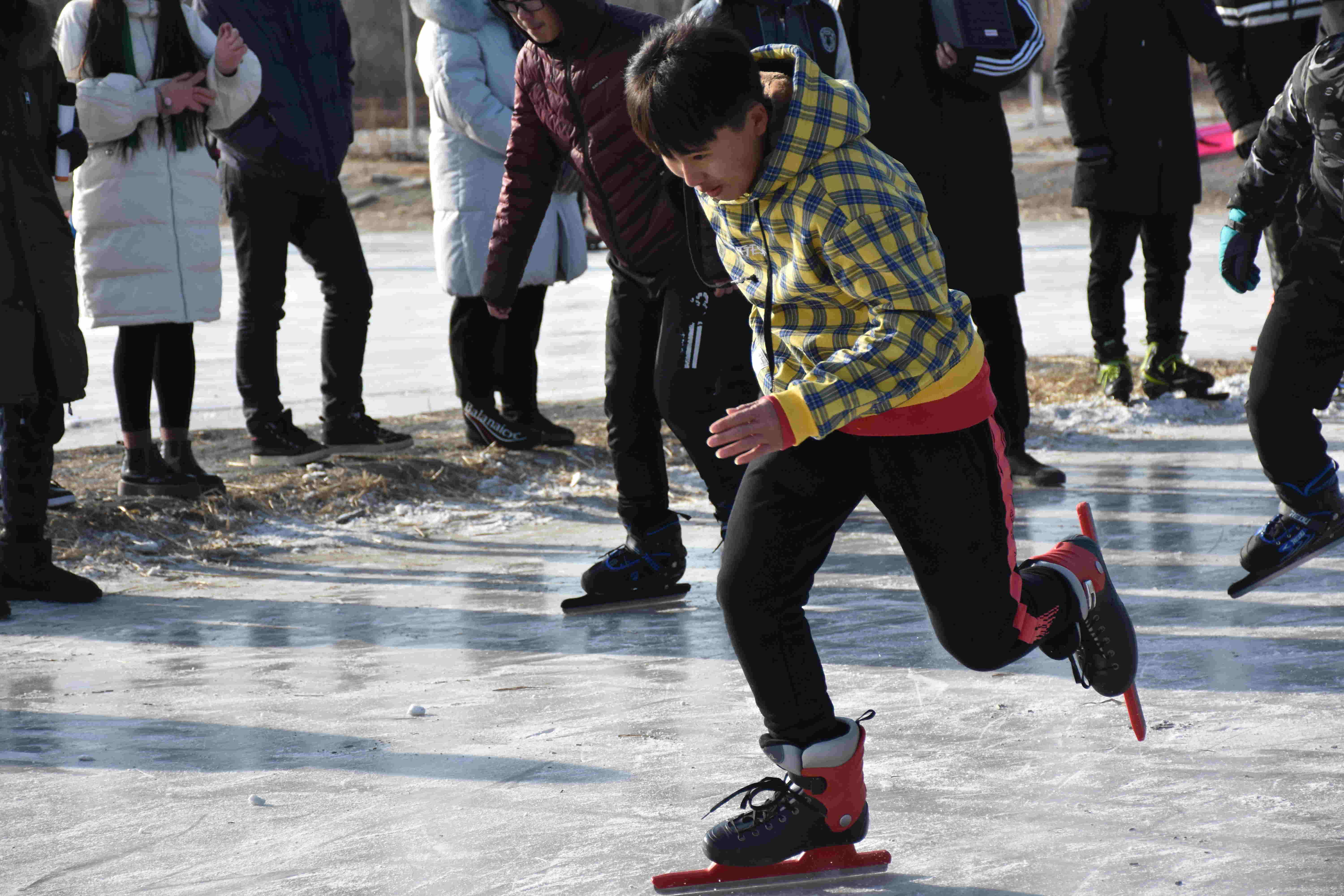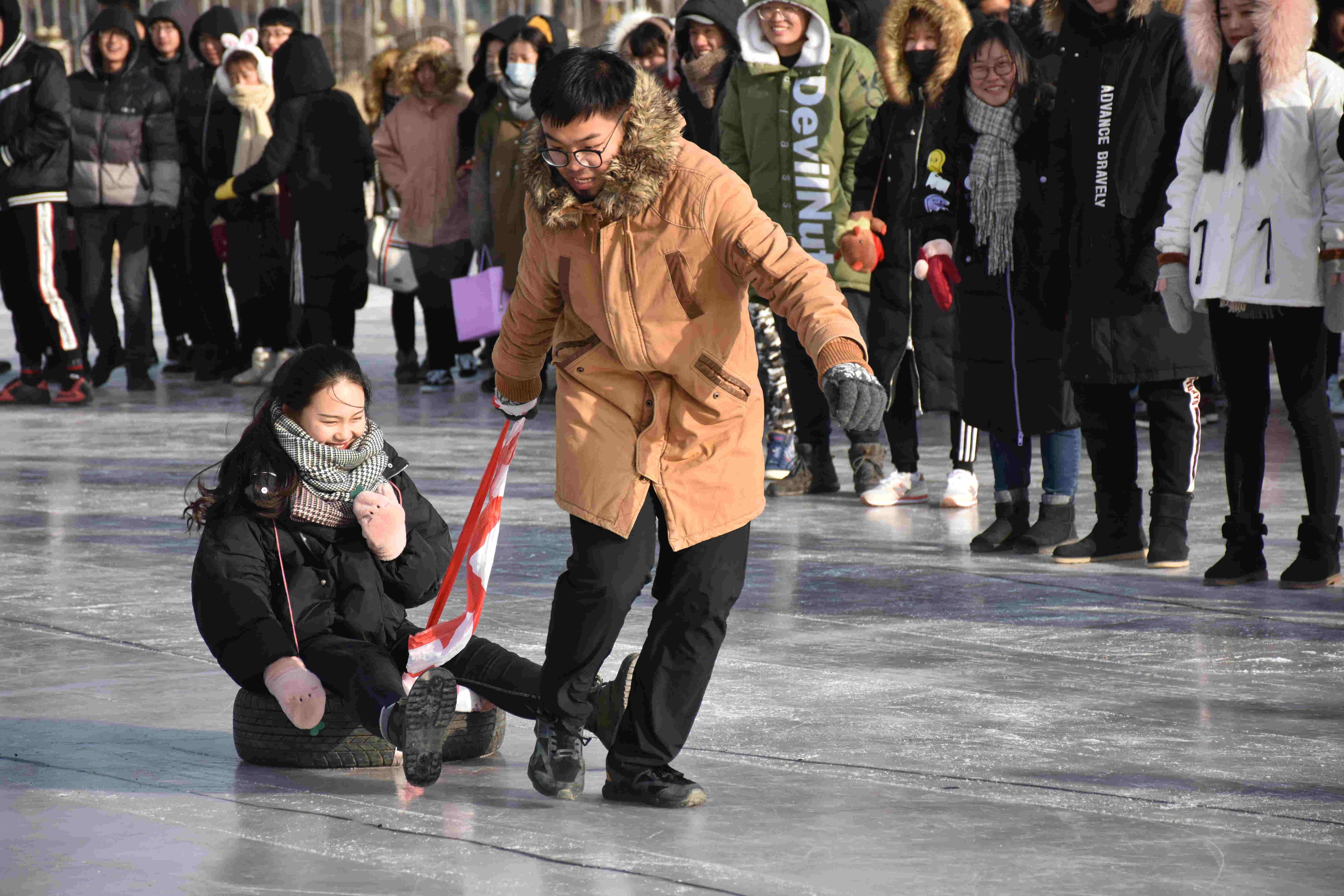 此次冰上趣味运动会设有团体竞技项目和个人竞技项目,主要赛事为速滑、轮胎滑行、齐心协力、冰上拖拉、翻山越岭、冰上速滑、冰上拔河,为更大限度的促进同学之前的交流,很多项目设为男女混合赛事。冰面上做动作,不同于地面,很多看似简单的动作,需要技巧的同时也需要智慧,一不小心就会人仰马翻,引起在场观众的阵阵欢笑。经过一上午赛事,2017级草业科学班级以微小的优势获得团体总分第一名。2017级动物医学1班、2017级动物医学4班分获二、三名。
