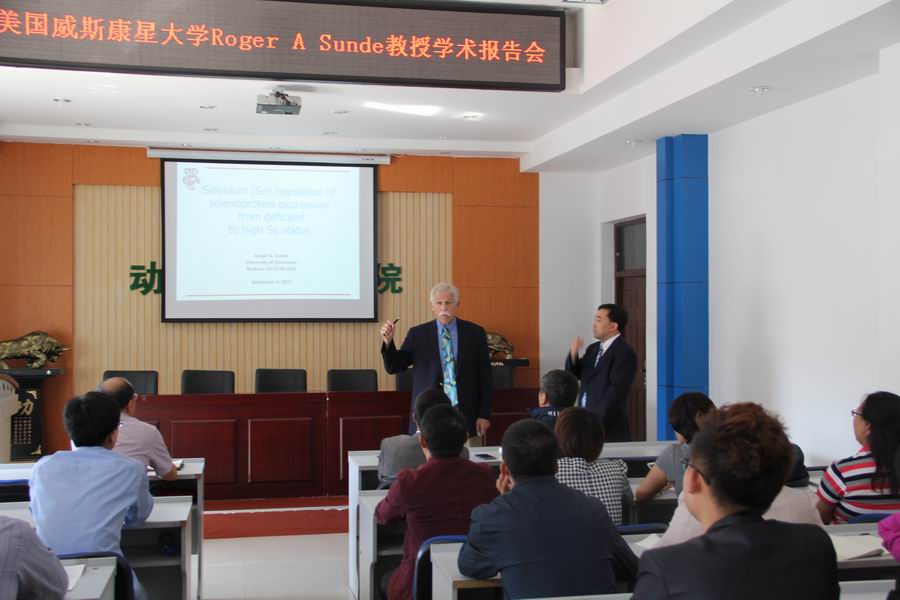 9月14日,美国威斯康星大学Roger A Sunde教授应邀来到U8国际官网为公司教师和研究生做了题为“Selenium (Se) regulation of selenoprotein expression from deficient to high Se status”的专题报告,Roger A Sunde教授详细的介绍了矿物质元素硒(Se)的营养学价值及其重要性,并从分子生物学角度深度揭示了硒对动物身体生长发育的重要作用,动物对硒的最低需要量以及硒缺乏症引起的疾病。报告期间,Roger A Sunde教授与参会的公司教师和研究生进行了深入的交流和互动。通过本次学术交流,进一步加强了公司师生与国外学者的沟通和了解,并且让公司师生深入了解了硒对生物体的价值和作用。