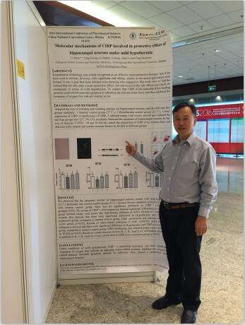 李士泽教授于2016 年 09 月 25 日至 28 日在北京国家会议中心参加了2016 国际生理学学术大会 ——生命的逻辑,并做了题目分别为Effectof O-GlcNAc on nutrition-related metabolic of mouse skeletal muscle satellitecells Under cold stress; Studymolecular mechanisms of CIRP involved in protective effect of hippocampalneurons under mild hypothermia墙报展示。