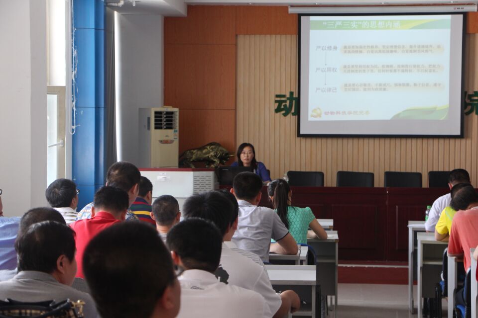 杨艳秋书记根据中央精神,紧密结合公司实际,从为什么、修什么、怎么修三个方面为全院教职员工系统阐释了开展“三严三实”的重大意义和丰富内涵,深刻讲解了修身的重要性,并从修德、修学、修为、修廉四个方面分享了如何修身,从“敬、净、静、境”四个境界提出了修身的具体要求。