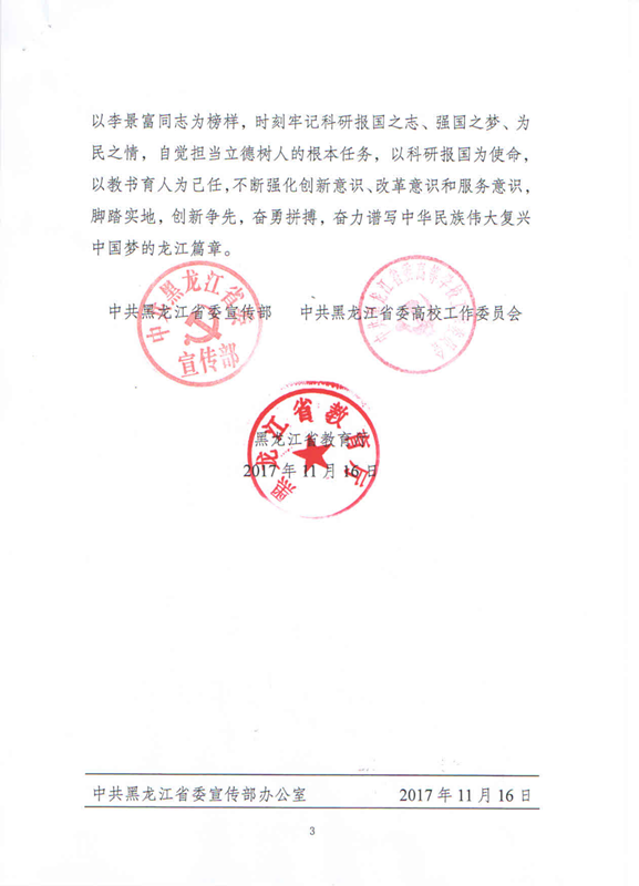 11月16日,省委宣传部、省委高校工委、省教育厅联合下发了《关于向李景富同志学习的决定》,要求在全省高校深入开展向李景富同志学习活动。现将文件转发。