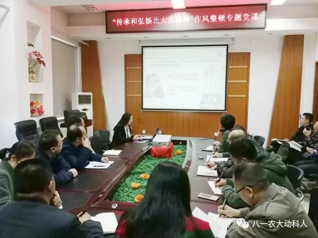 本次专题党课杨艳秋同志主要从作风整顿基本情况、黑龙江宝贵的精神文化资源、北大荒精神文化的历史内涵和时代价值及在培养复合应用型人才的过程中传承和弘扬北大荒精神文化四个方面进行阐述。