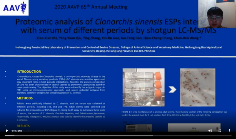 公司兽医寄生虫团队研究生参加2020年美国兽医寄生虫学家协会(AAVP)第65届网络虚拟年会