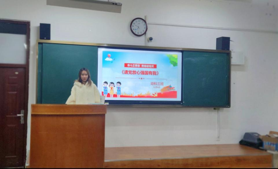 此次团活主题为“请党放心,强国有我”,活动中同学们积极学习讨论,提出自己的见解,明确了“没有共产党,就没有新中国”这一理念,只有在中国共产党的领导下,中华民族才能实现伟大复兴。本次主题团日活动中,各个寝室表演相关节目并开展许多趣味团建小游戏。同学们笑声不断,通过节目表演,各寝同学积极表现自己,加深了互相之间的了解。