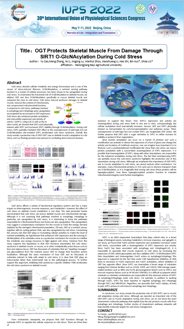国际生理科学联合会是国际生理学界重要的国际学术组织,为促进全球生理科学事业的发展和国际交流发挥了重要作用。此次会议,我国的生理学发展前沿和科研成果得到了国际上的广泛认可,也为我国青年生理学工作者提供了展示其成果和交流学习的平台,