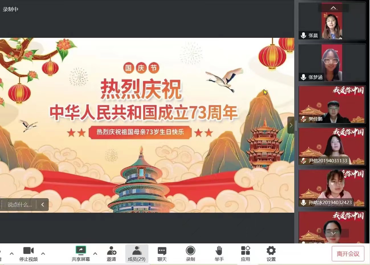 “五星红旗迎风飘扬,胜利歌声多么响亮;歌唱我们亲爱的祖国,从今走向繁荣富强……”动科院员工第三党支部师生通过线上方式合唱《歌唱祖国》,用音乐和歌声表达对祖国73岁生日最深切的祝福和喜迎党的二十大的美好心愿。嘹亮的歌声,透露出中华儿女的爱国情、彰显了动科人的拼搏奋进心、表达着对美好未来的期盼憧憬意,展示了动科院员工第三党支部奋发有为、团结向上的精神风采。