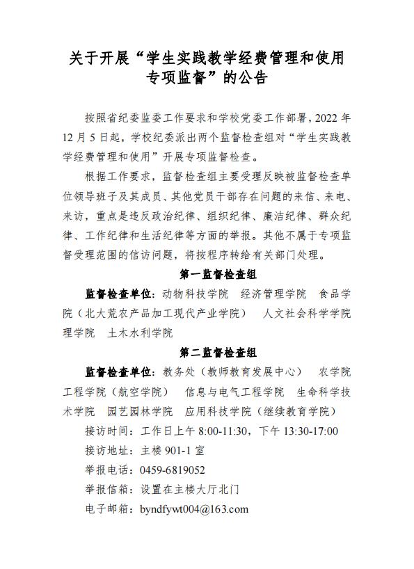 关于开展“员工实践教学经费管理和使用专项监督”的公告