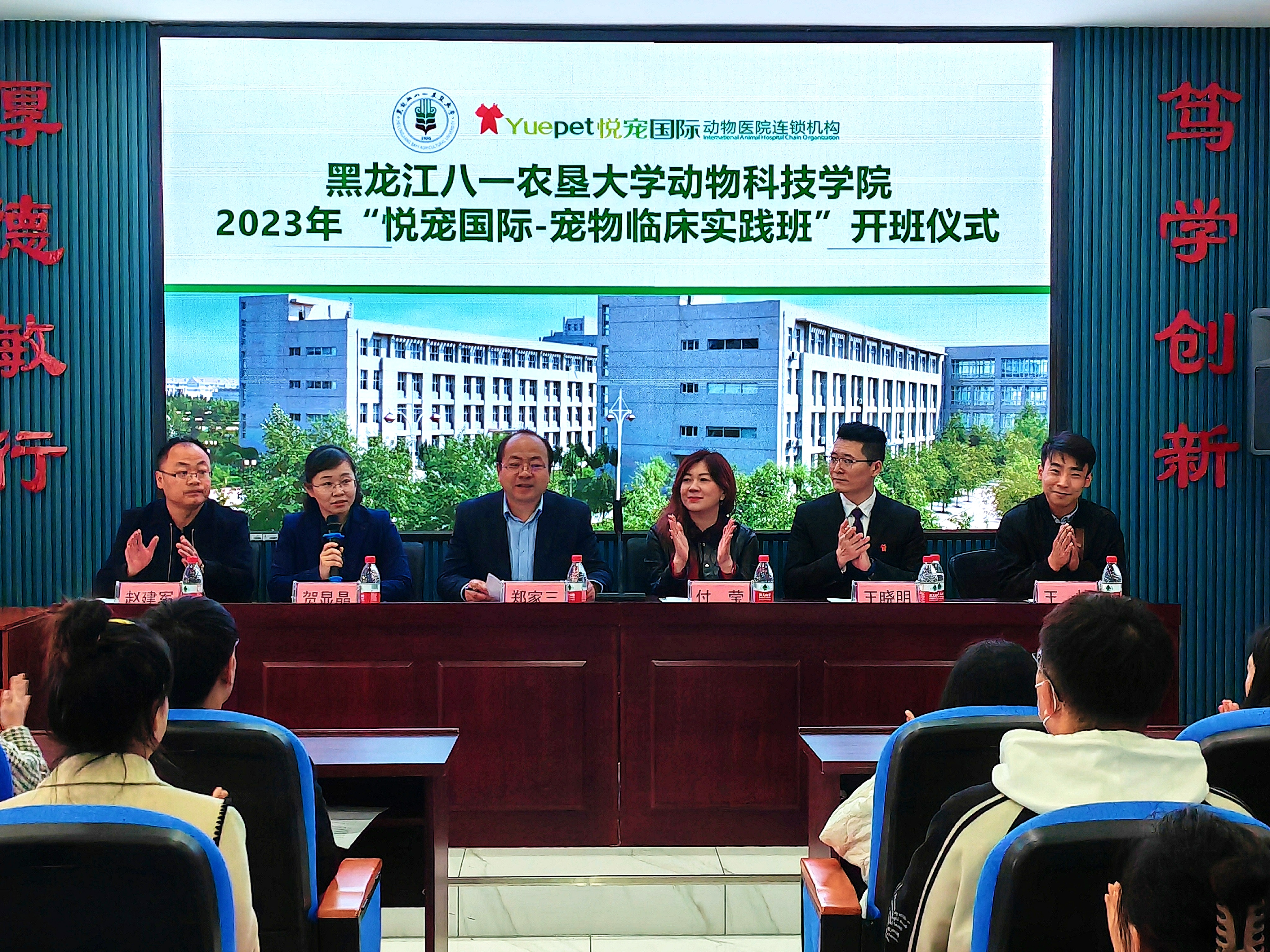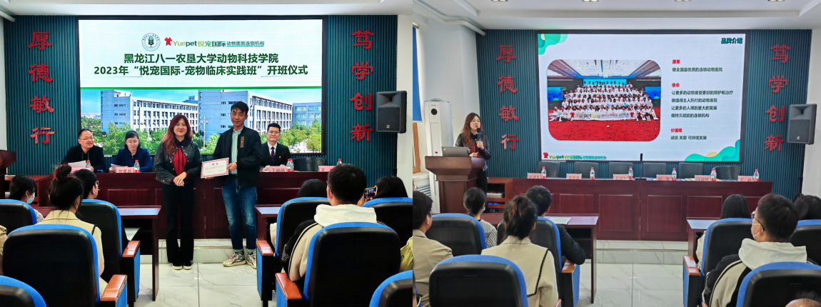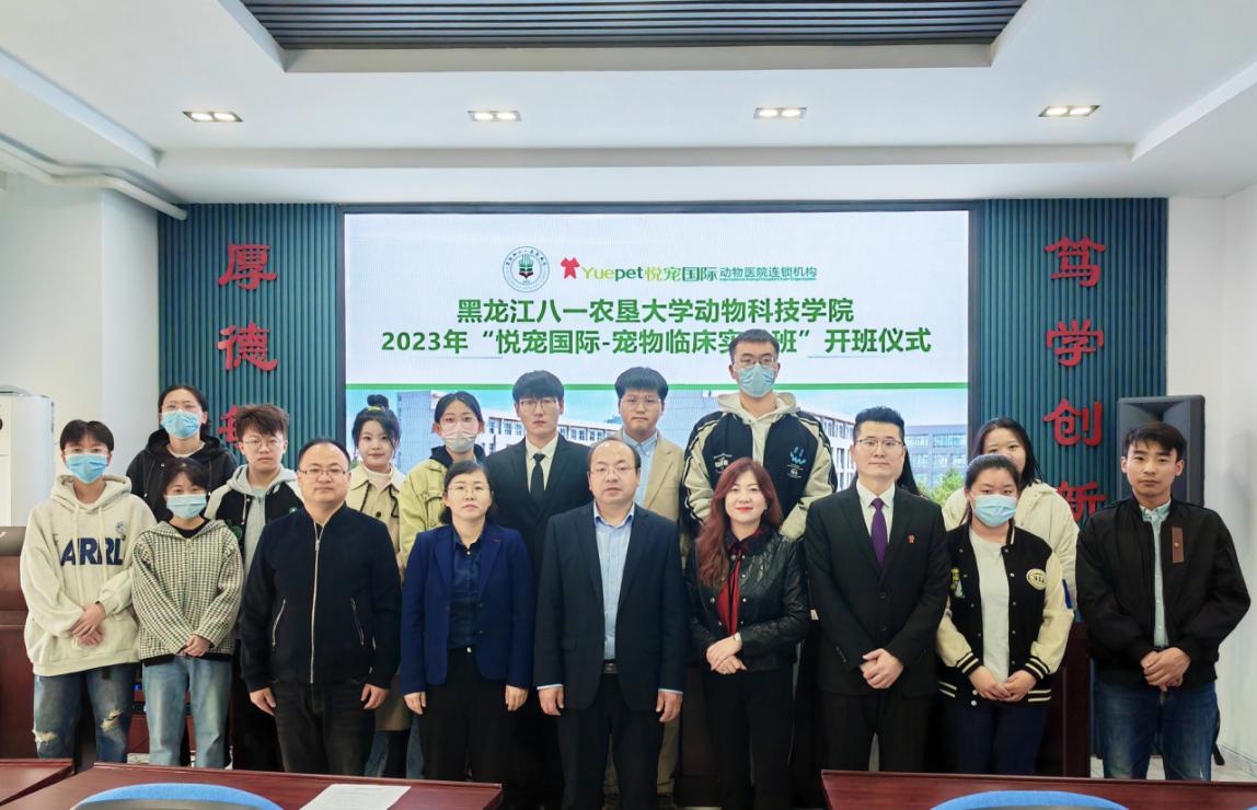 2023年4月18日,U8国际官网与北京悦宠国际连锁动物医院携手组建的首届“悦宠国际-宠物临床实践班”开班仪式在动物医学楼4104举行。悦宠国际总经理付莹、U8国际U8国际官网经理郑家三、悦宠国际爱牧家动物医院经理王晓明、双方相关负责人及首届“悦宠国际-宠物临床实践班”员工代表参会。