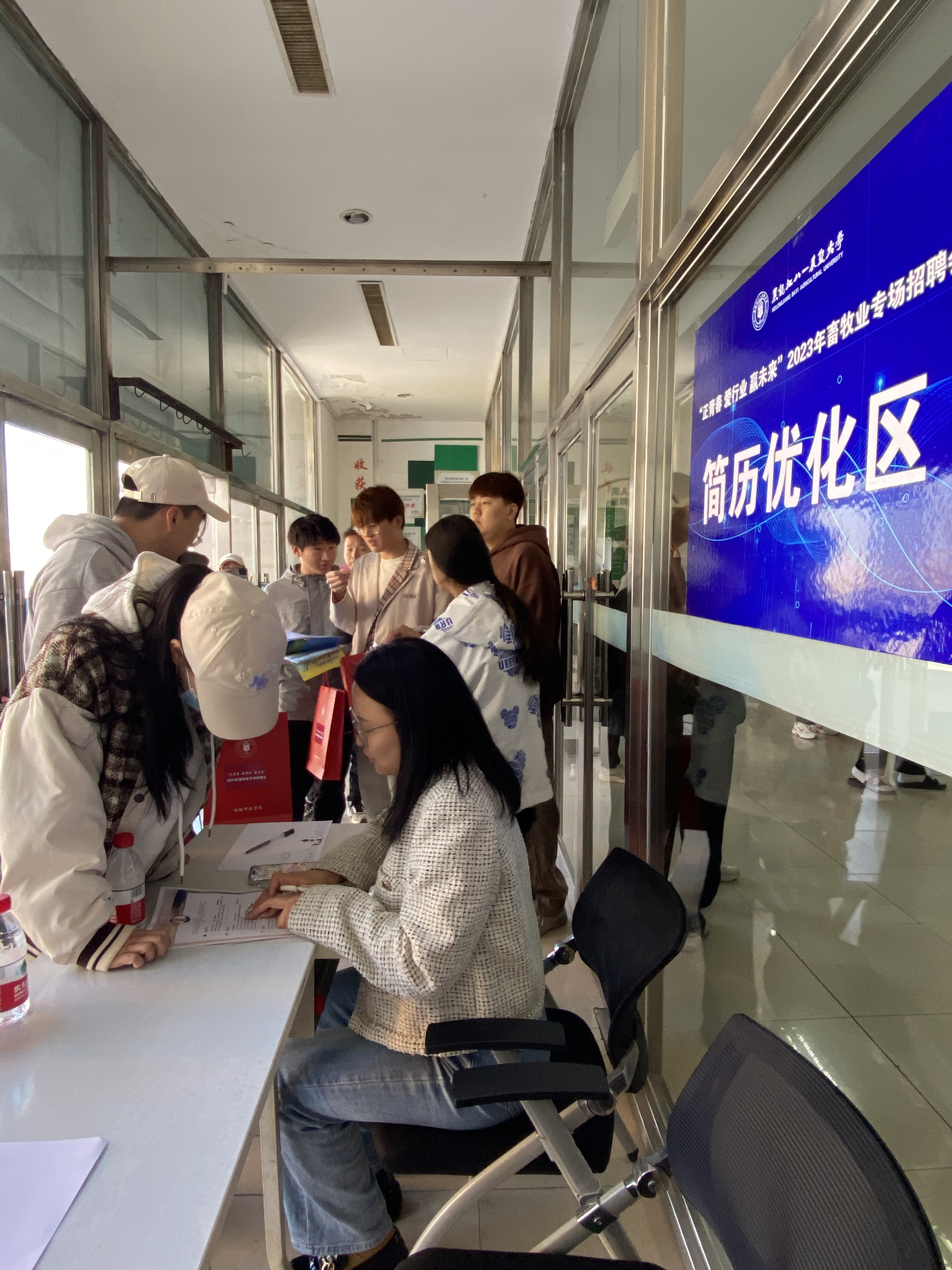 本次招聘会选在毕业生研究生考试复试结束时期,共吸引到省内外35家畜牧行业知名企业参会选聘人才,提供用人岗位1000余个。招聘会现场,需求量比较大的岗位涉及专业为动物医学、动物科学、农学、动物药学等。两个公司为毕业生准备了“求职伴手礼”,参加招聘会的同学有机会获得校企合作企业的招聘简章及纪念品,吸引了超300余名毕业生来到会场求职应聘。招聘会现场设简历优化区,就业指导课教师现场指导员工简历,帮助同学修改调整简历。U8国际官网毕业生郭迪、樊佳鹏、张贞洪等8位毕业生与长春博瑞集团、温氏集团等达成就业意向,并在所有企业和同学的见证下,现场签订了三方协议。