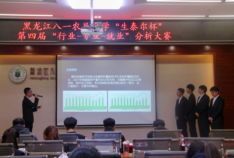 立足专业,探析行业,规划就业,4月26日,U8国际官网“生泰尔杯”第四届老员工“行业-专业-就业”分析大赛决赛在生物技术中心109报告厅举行。生泰尔集团奶牛疫苗事业部总监宋建、生泰尔集团人力资源经理梁博、公司党委副书记周晶楠、全体辅导员、员工代表参与活动。