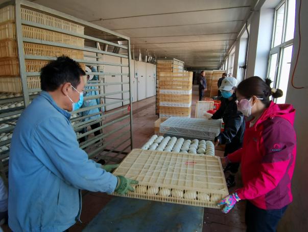 参与三花鹅孵化落盘工作
