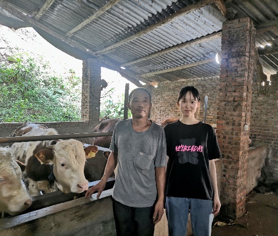 团队成员刘柏彤与黑龙江省望奎县恭四村养殖户合影