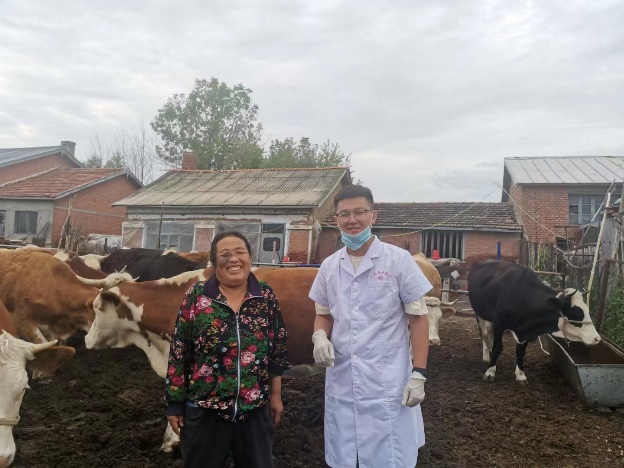 团队成员周青医与黑龙江省石泉镇永跃村养殖户合影