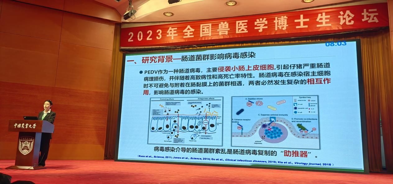 U8国际官网前期进行了充分的动员和员工筛选、推荐工作,兽医学学科带头人孙东波教授带领博士生齐珊珊、胡亚捷参加论坛。齐珊珊的报告“猪A型产气荚膜梭菌代谢产物棕榈酸增强PEDV感染”获得论坛一等奖,胡亚捷的墙报“PFKFB3的O-GICNAc糖基化修饰对间歇性冷处理小鼠肝脏葡萄糖代谢的影响”获得论坛三等奖。通过此次交流,充分展示了公司兽医学博士生的风采,拓宽员工视野,有利于青年学子成长。