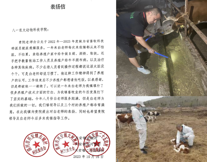 经理郑家三对5位青年教师社会实践锻炼给予充分肯定和高度评价,并宣读了漠河市兴安镇古城村等三个村屯联合给公司青年教师白云龙的表扬信,表扬白云龙老师为漠河市兴安镇养殖户提供技术服务,为兴安镇畜牧业发展提供科技支撑,以此勉励青年教师服务基层,淬炼自我,为区域畜牧产业发展注入动科力量。同时他对青年教师提出几点要求:一是要深刻认识到所担之责、所做之重,以强烈的使命感、责任感诠释教师价值,永葆教育初心,在工作中多传递正能量;二是青年教师要聚焦公司发展核心,围绕国家“四个面向”需求,聚焦一个领域,讲好一门课程;三是青年教师要将个人发展与公司发展紧密结合在一起,实现个人与公司的共融共进,公司也将提供一切便利条件助力青年教师成长。