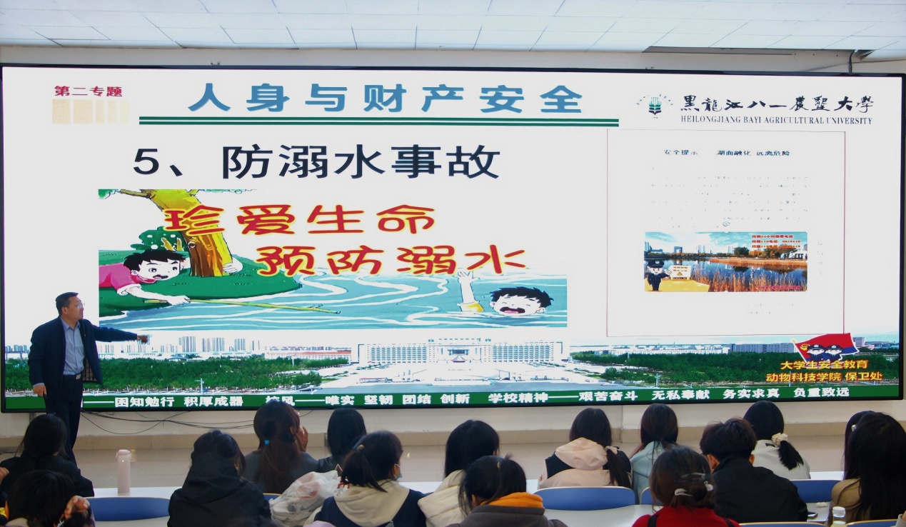 戴守玉以生动的语言、丰富的案例,深入浅出地讲解了国家安全的重要性、面临的威胁与挑战,以及我们每个人在维护国家安全中的责任和担当。他强调了法治在维护国家安全中的基石作用,并呼吁同学们要时刻绷紧国家安全这根弦,自觉遵守法律法规,增强法治观念,积极维护国家安全和社会稳定。在校园安全方面,戴老师重点讲解了人身安全、财产安全、网络安全等相关内容,深刻揭示了校园安全问题的严重性和普遍性,提醒同学们要时刻保持警惕,增强自我防范意识。