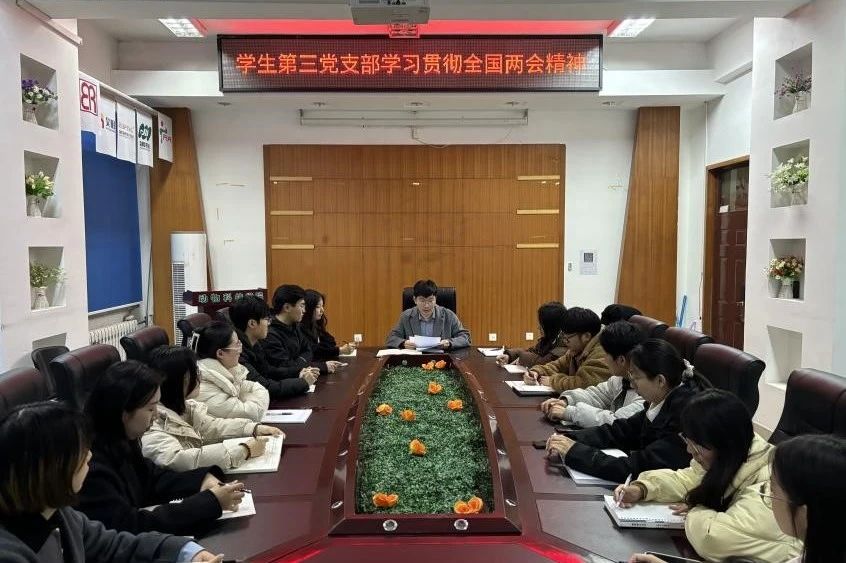 员工第三党支部书记于浪潮结合全国“两会”关键词开展学习贯彻两会精神专题学习会议。他要求支部上下要将两会精神与自身的学习与工作实际紧密结合起来,将其内化于心、外化于行,不断提升思想政治素质和实践能力。