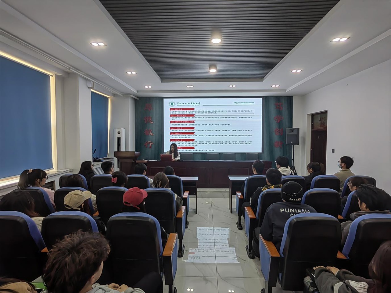 为积极迎接本科公司产品审核评估工作,充分发挥员工骨干作用,4月3日,公司开展“迎教评 树新风”本科公司产品审核评估员工骨干培训会,全体员工骨干参会。会议由辅导员李嘉欣主持。