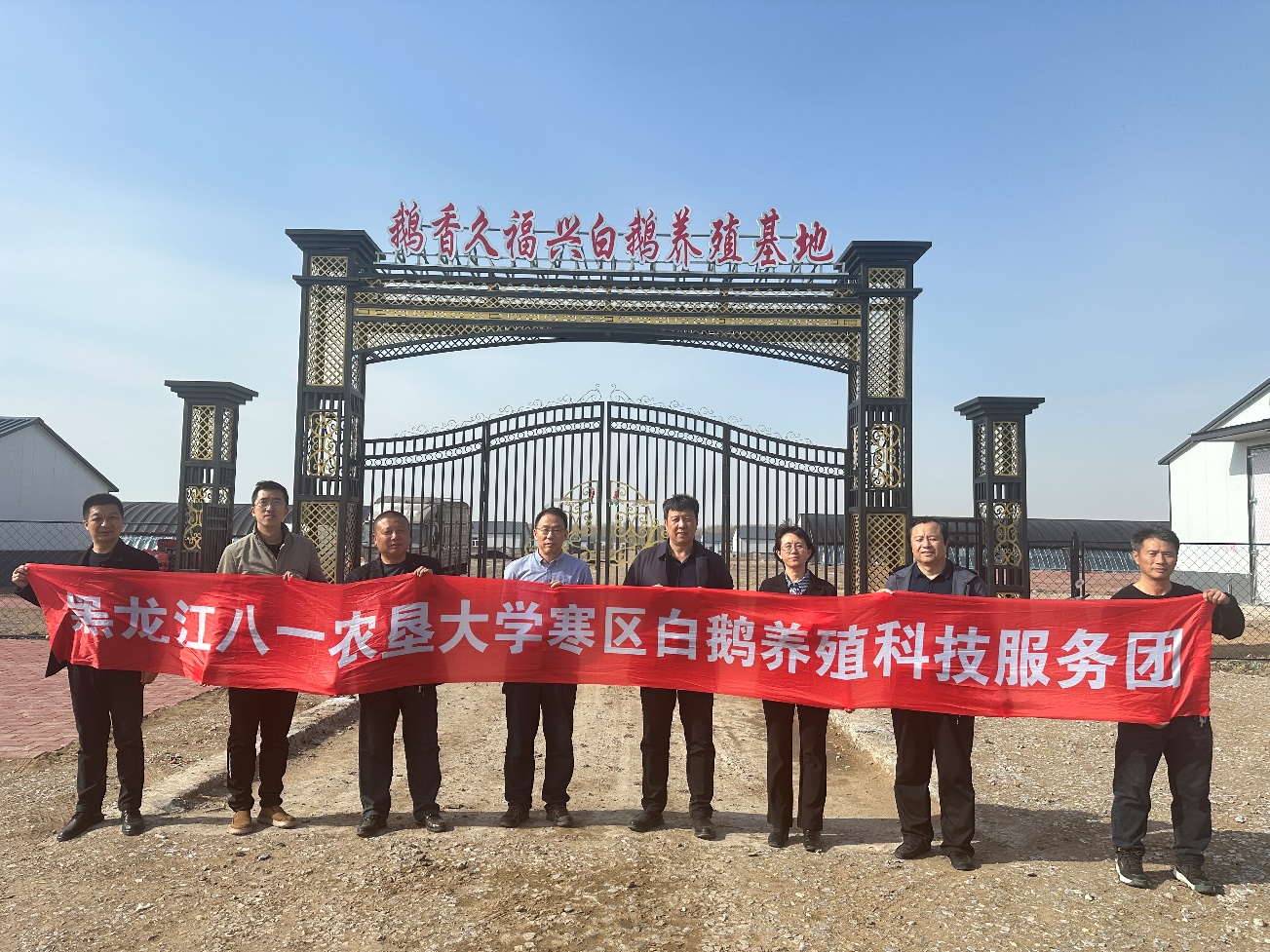 团队在肇源县超等乡有利村,益农种鹅场,分别进行了养鹅示范村和示范基地的授牌,并签订了合作协议。在福兴白鹅养殖基地、黑龙江鹅香久食品有限公司调研、指导,并就籽鹅培育、种业创新、科技小院、鹅病防控等达成初步服务意向。