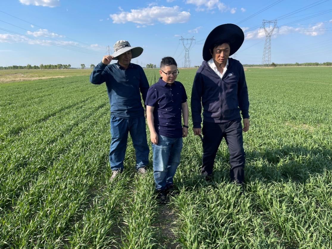 2024年5月19-20日,中国农业科公司北京畜牧兽医研究所副研究员江文波博士应邀到院进行学术交流。19日下午江文波博士同草业科学系系主任曲善民、教师杨伟光教授、一同考察参观了让胡路区红色草原牧场的饲用燕麦、苜蓿种植试验区。双方就盐碱生境下饲用燕麦、苜蓿种植技术及高产高抗牧草种质选育方法进行了深入交流。
