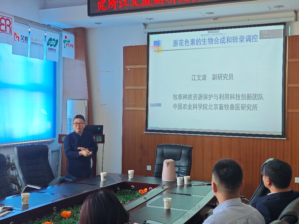 20日上午江文波博士同公司科技处副处长李国良教授、农公司杜吉到教授、草业科学系教师及研究生进行了交流座谈。会上江文波博士应邀作了题为“原花色素的生物合成和转录调控”的学术报告,深入讲述了其研究成果及研究方法。报告结束后,与会师生就基因编辑技术研究及抗性关键基因筛选及验证等问题与江文波博士进行了交流,本次学术交流拓宽了与会师生对于基因育种研究的视野,加深了师生对合成生物学的理解,进一步加强了草业科学系与国内顶尖科研院所的联系。