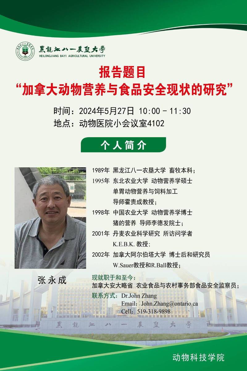 张永成教授—加拿大动物营养与食品安全现状的研究