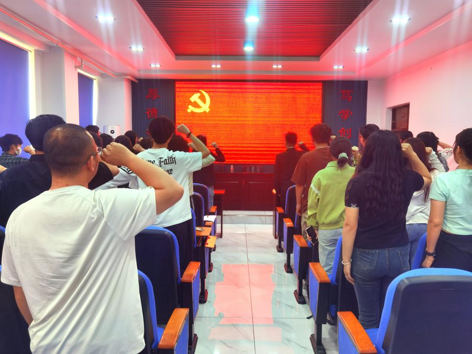 高晶带领毕业生党员重温入党誓词,毕业生党员们声音嘹亮、铿锵有力,更加坚定了毕业生党员们向着未来道路继续前进的决心。