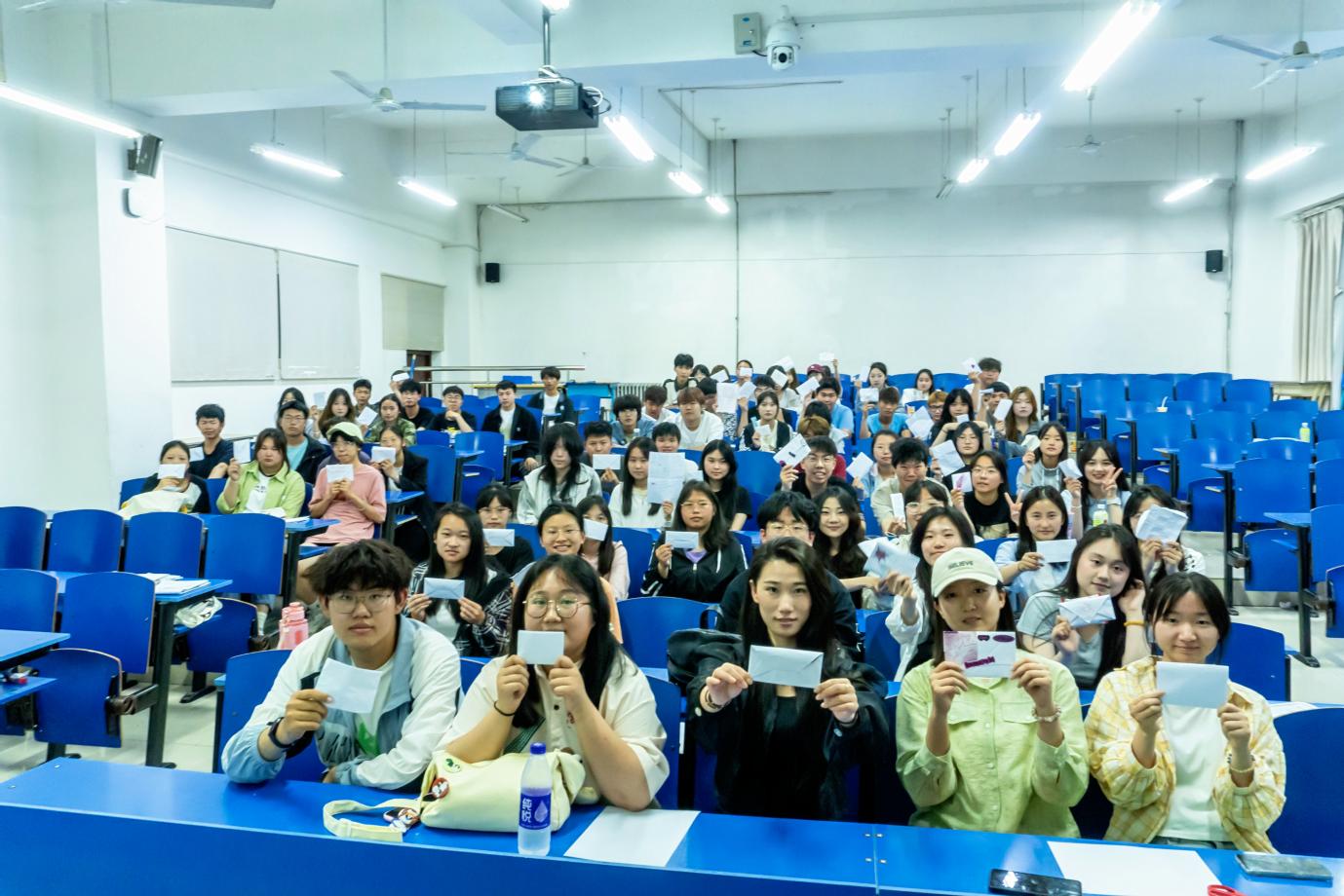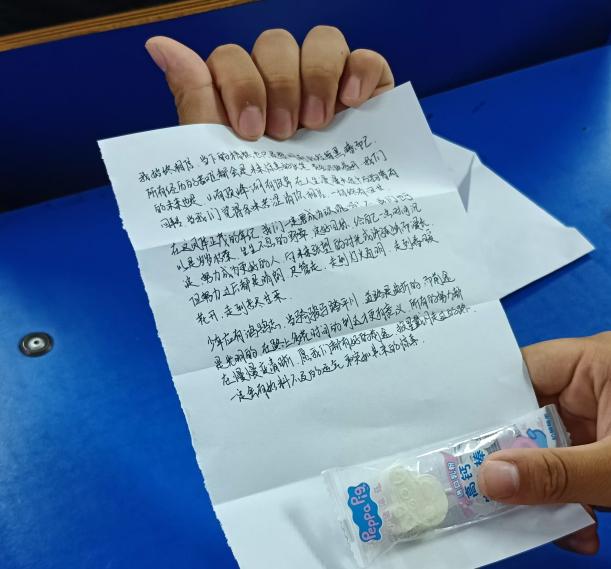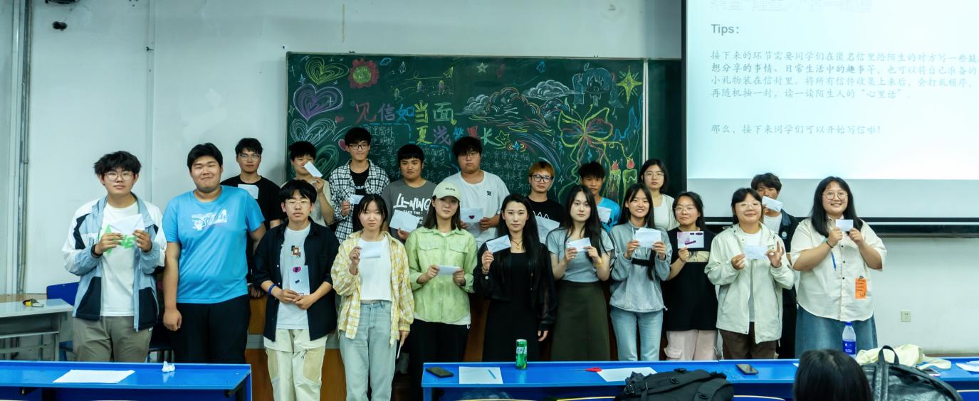 活动的主体为一次别开生面的“交换信件”活动,每位同学在匿名信里给陌生的对方写一些鼓励的话、想分享的事情、日常生活中的趣事等,将自己准备的零食、礼物装在信封里。将所有信件收集上来放进“当见箱”中,打乱顺序,由每个同学再随机抽一封,读一读来自陌生人的“心里话”。“当见箱”被传递到每个同学的手里,抽到信封的同学们马上展开信阅读,他们有的被信里的内容逗笑,乐得前仰后合;有的拿到了小礼品,与身旁同学分享着信里附带的糖果;也有的读到动容之处,悄悄热泪盈眶。