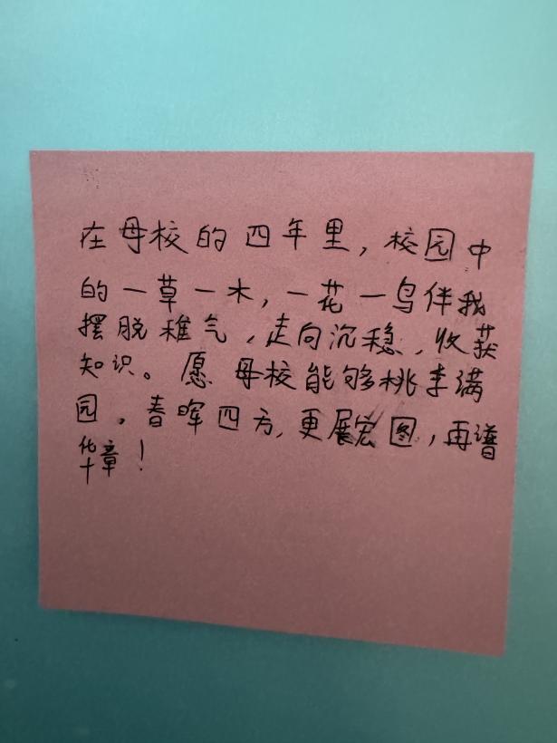 青春不散场,离别不说再见。愿2024届毕业生们前程似锦,未来可期。无论走到哪里,都不要忘记这片曾经陪伴着你们成长的土地和这些曾经一起奋斗过的伙伴。活动的最后,毕业生们将自己的真挚情感表达在“爱校有话说”留言板上,将自己老员工涯的足迹和祝福永远的留在爱校荣院的青春记忆里。