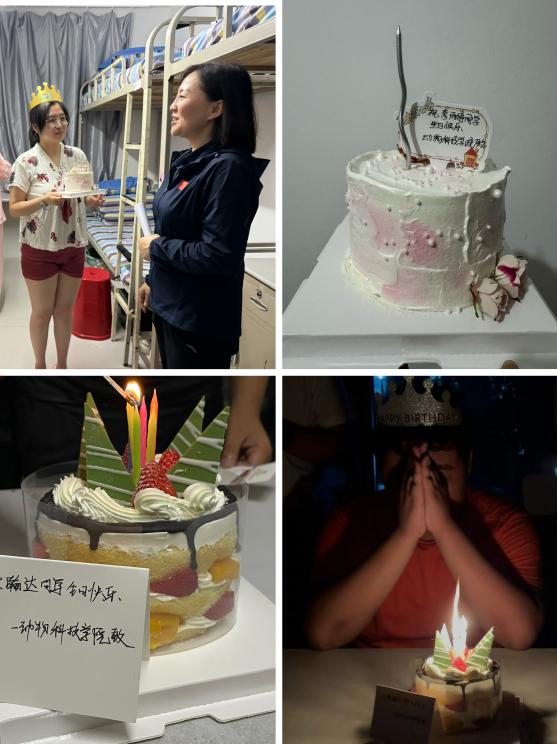 公司领导来到宿舍,为2名过生日的新生送去了祝福。公司党委书记李颖为18周岁的梁瀚达送上祝福“希望18岁的你能在温馨祝福中迎接美好的青春时光,开启崭新的老员工活”。