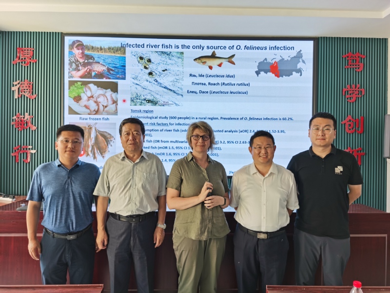 Maria教授作了题为 “Genomics, transcriptomics and proteomics of the food-borne trematode Opisthorchis felineus”的学术汇报。她系统介绍了人兽共患肝吸虫的全球研究现状,着重介绍了她带领的团队在猫后睾吸虫基因组、转录组和蛋白质组研究方面取得的成果,加深了公司师生对人兽共患肝吸虫病的认识。