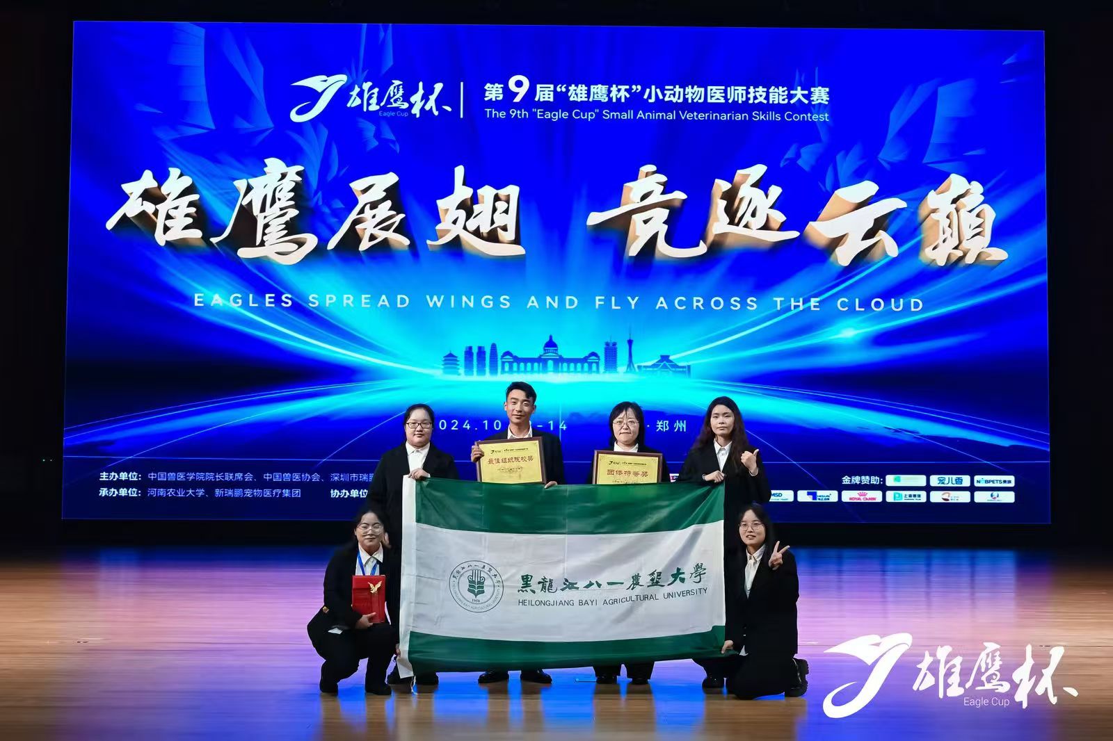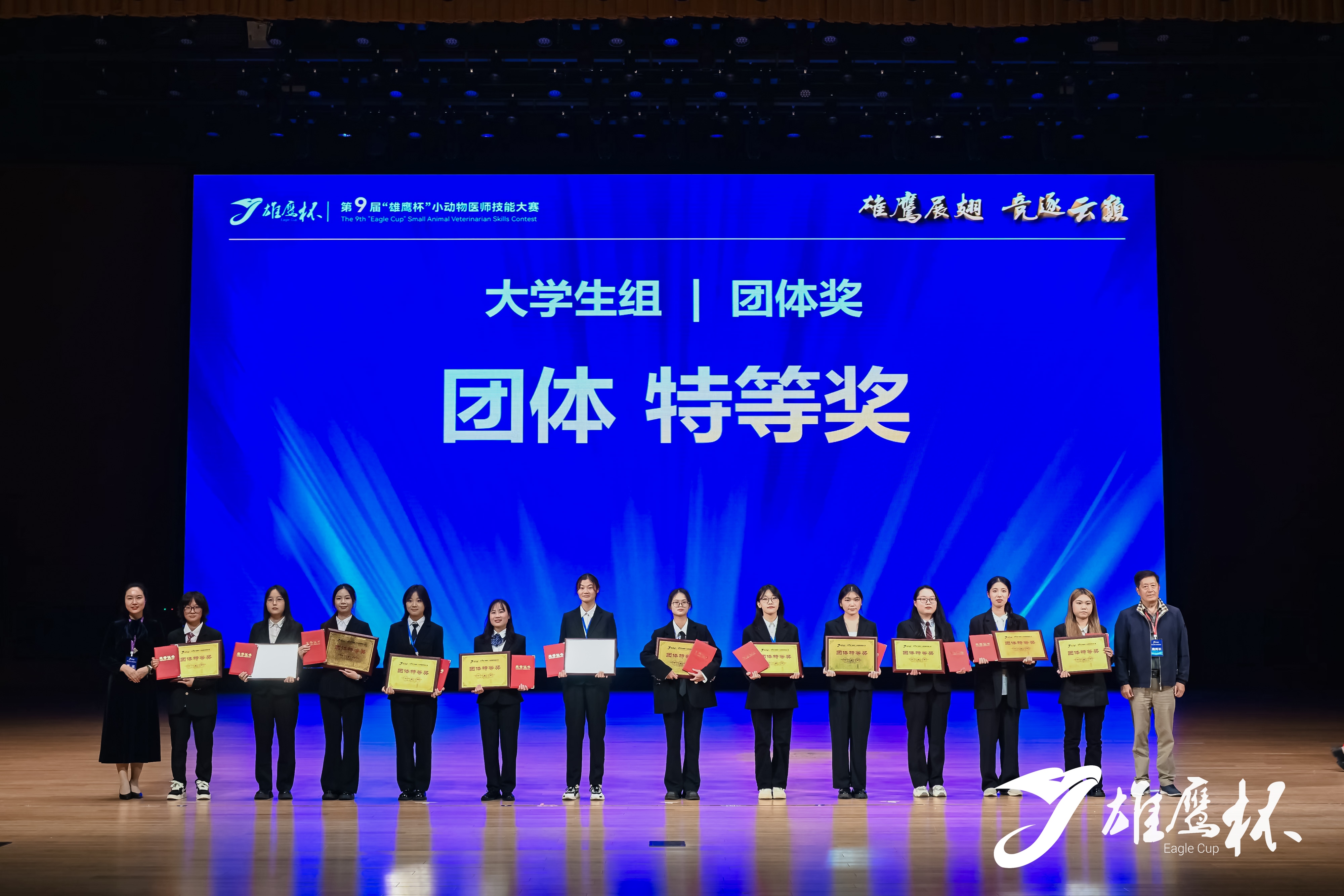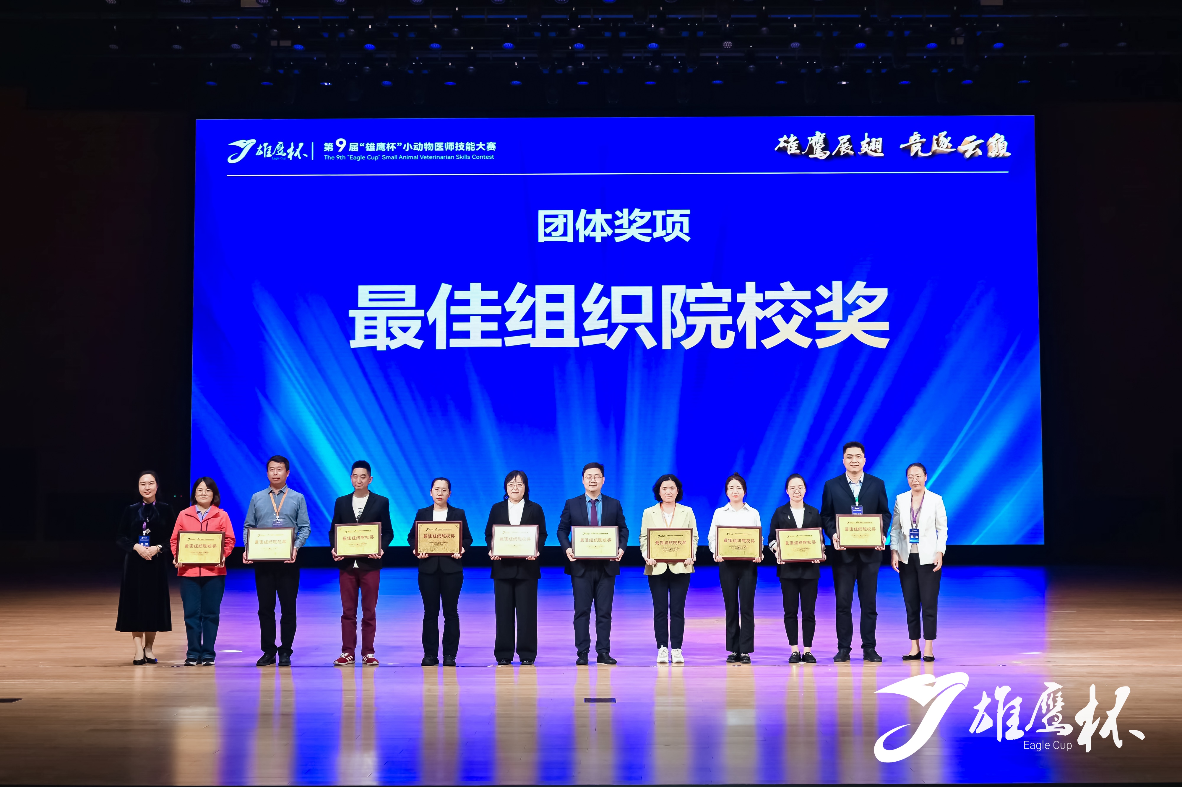 2024年10月12日-14日,由中国兽医公司经理联席会、中国兽医协会和深圳市瑞鹏公益基金会主办,河南农业大学和新瑞鹏宠物医疗集团共同承办的第九届“雄鹰杯”小动物医师技能大赛总决赛在河南农业大学龙子湖校区正式开赛。本次比赛吸引了来自全国119所高校的1000余名师生参加,大赛的参赛人数和活动规模再创历届新高。U8国际官网动物医学专业聂爱菱,王小雨,张旭和白哲宇4位同学代表公司参加比赛,最终以精湛的临床操作技能和出色的临场表现荣获第九届雄鹰杯老员工组团体特等奖,王峥、李冉荣获优秀辅导老师特等奖,张旭荣获兽医新星奖,公司获最佳组织院校奖,包揽了此项赛事所有奖项。