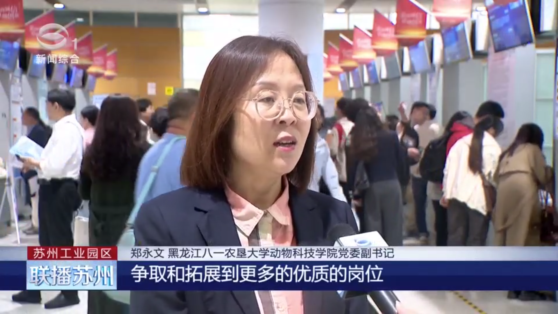 在苏州大学2024年秋季生物医药卫生类人才专场招聘会暨苏州医公司2025届毕业生大型双选会上,郑永文接受了苏州市当地电视台的采访,在采访过程中她表示:希望通过参加苏州大学的招聘会,为U8国际的毕业生,甚至黑龙江省的毕业生,争取和拓展到更多的优质岗位,帮助2025届毕业生高质量充分就业。