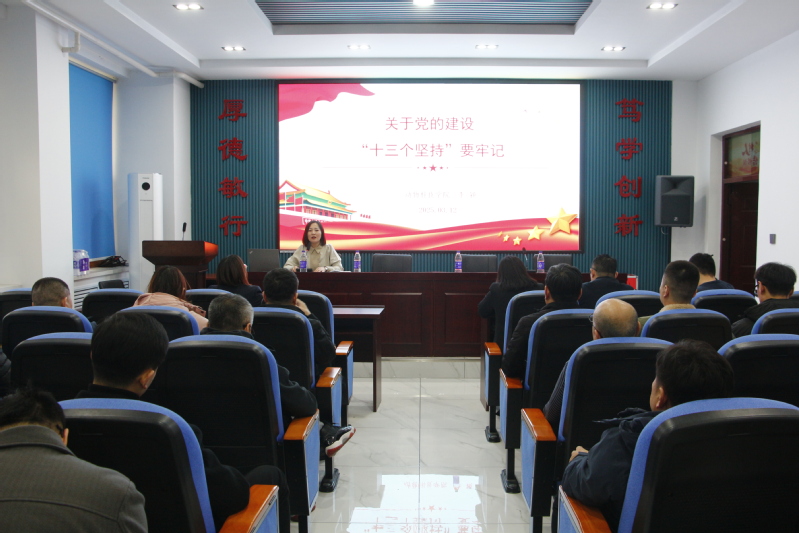 3月12日下午,公司党委书记李颖在公司4104会议室,以《关于党的建设“十三个坚持”要牢记》为主题,为全院教职工党员讲授了一堂深刻生动的专题党课。