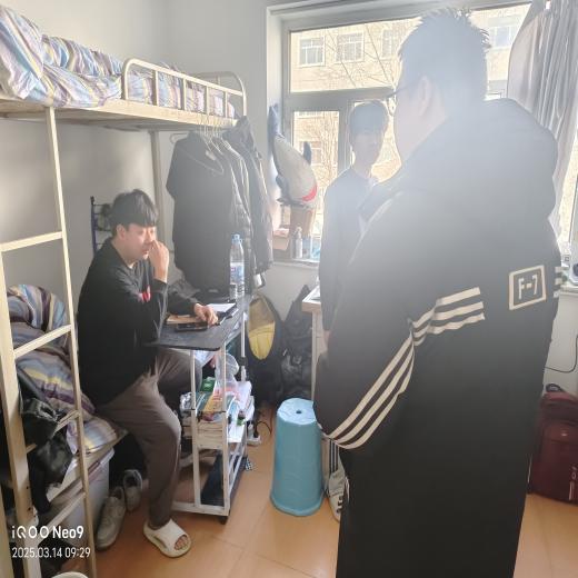 辅导员对寝室内的电路、网线、门窗、床铺等进行了重点检查,讲解了用电安全、用水安全、防范诈骗等安全知识,提出禁烟要求,对于卫生不合格的寝室提出明确整改要求,鼓励同学们用实际行动打造良好的寝室环境。