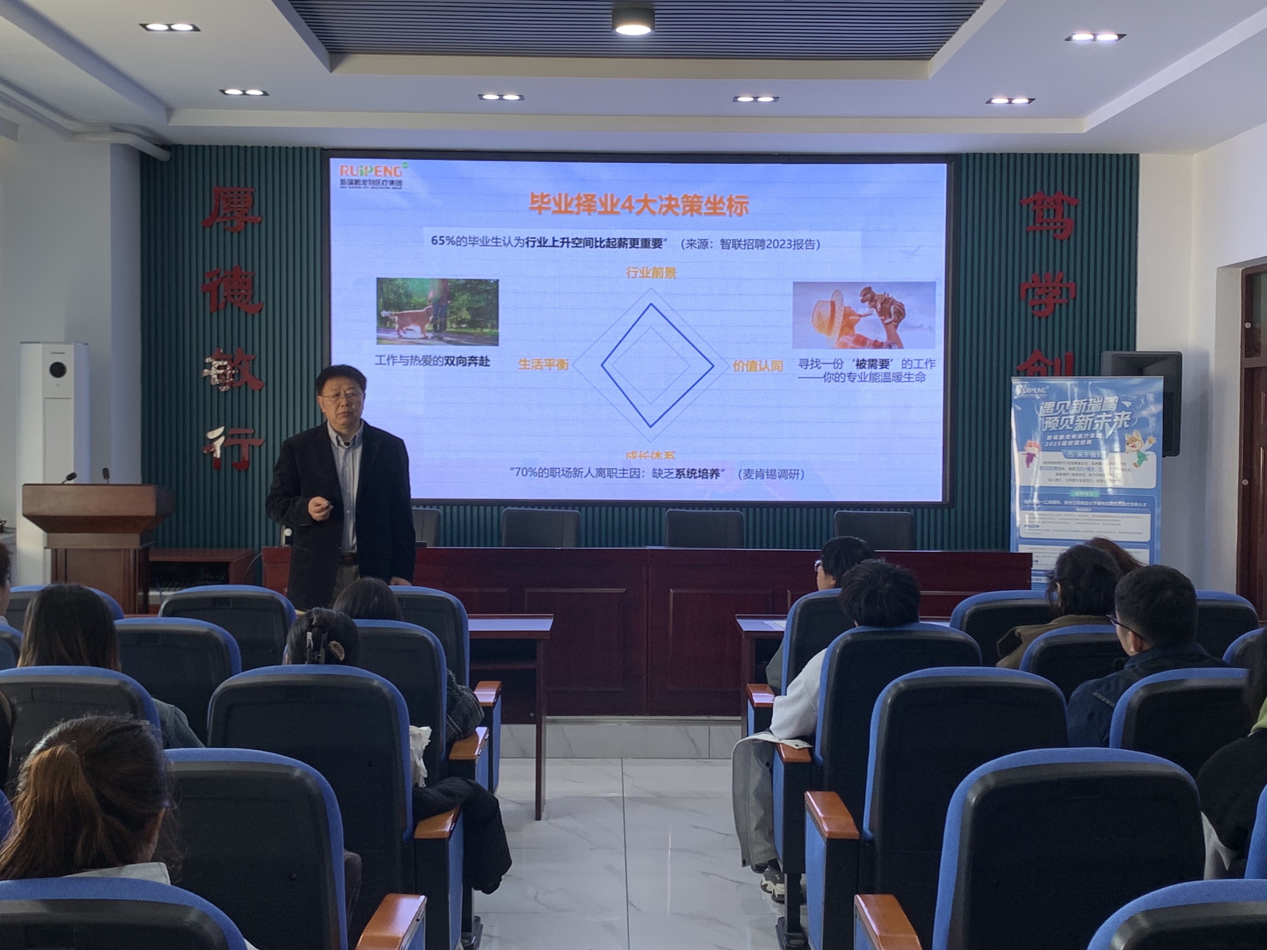 为提高2025届毕业生对宠物行业的了解,清晰宠物医生职业发展路径,3月20日,公司邀请2025届毕业生职业指导师林德贵老师来校,开展题为《新时期宠物行业发展概况》的专题讲座,讲座由公司团委书记曲艳鹏主持,公司100余名师生代表参加此次活动。