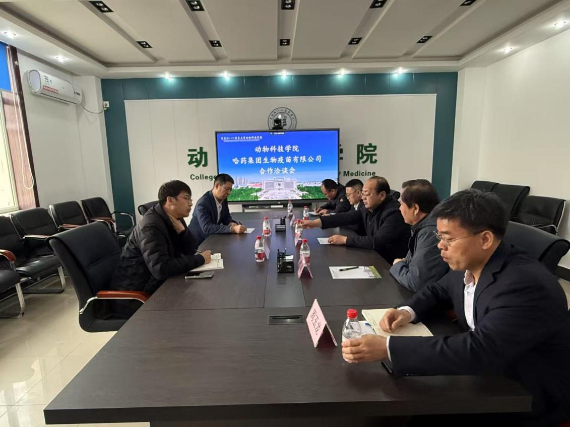 4月25日,哈药集团生物疫苗有限公司总经理刘洪斌一行到访公司开展合作洽谈。公司经理郑家三,副经理王建发,哈药集团生物疫苗有限公司研发主任柴华,动物医学系朱战波、赵建军、周玉龙教授参加座谈会。
