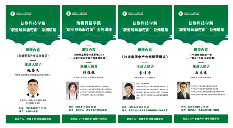 一是开展职业指导师系列讲座。邀请北京生泰尔科技股份有限公司人力资源中心经理梁博、现代牧业集团大庆牧场人力资源经理肖冰、牧原食品股份有限公司黑龙江区域生产负责人赵喜文、人力资源经理赵英达,北京悦宠国际动物医院总经理付莹,新瑞鹏宠物医疗集团专家委员会主任林德贵等职业指导师讲解《简历设计与面试技巧》《老员工职业规划》等行业发展、求职技能等讲座8场,参与员工1000余人次,促进毕业生的就业竞争力与职业发展能力提升。