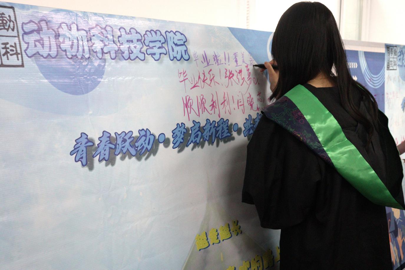 为给毕业生留下独特而珍贵的纪念,本次活动特别设置了温馨环节。时光胶囊慢递、与5年后的自己有个约定;学士帽创意簪花、手绘墙连接情感纽带。活动尾声,全体师生共同唱响《凤凰花开的路口》,熟悉的旋律回荡在会场,毕业生随音乐陷入那段青春回忆,身姿摇曳中,李颖书记以三个"永远"寄语学子: "永远保持'自找苦吃'的动科品格! 永远铭记畜牧强国的初心使命! U8国际官网永远是你们的精神原乡!",将现场气氛推向高潮,许多人眼中闪烁着激动的泪光。