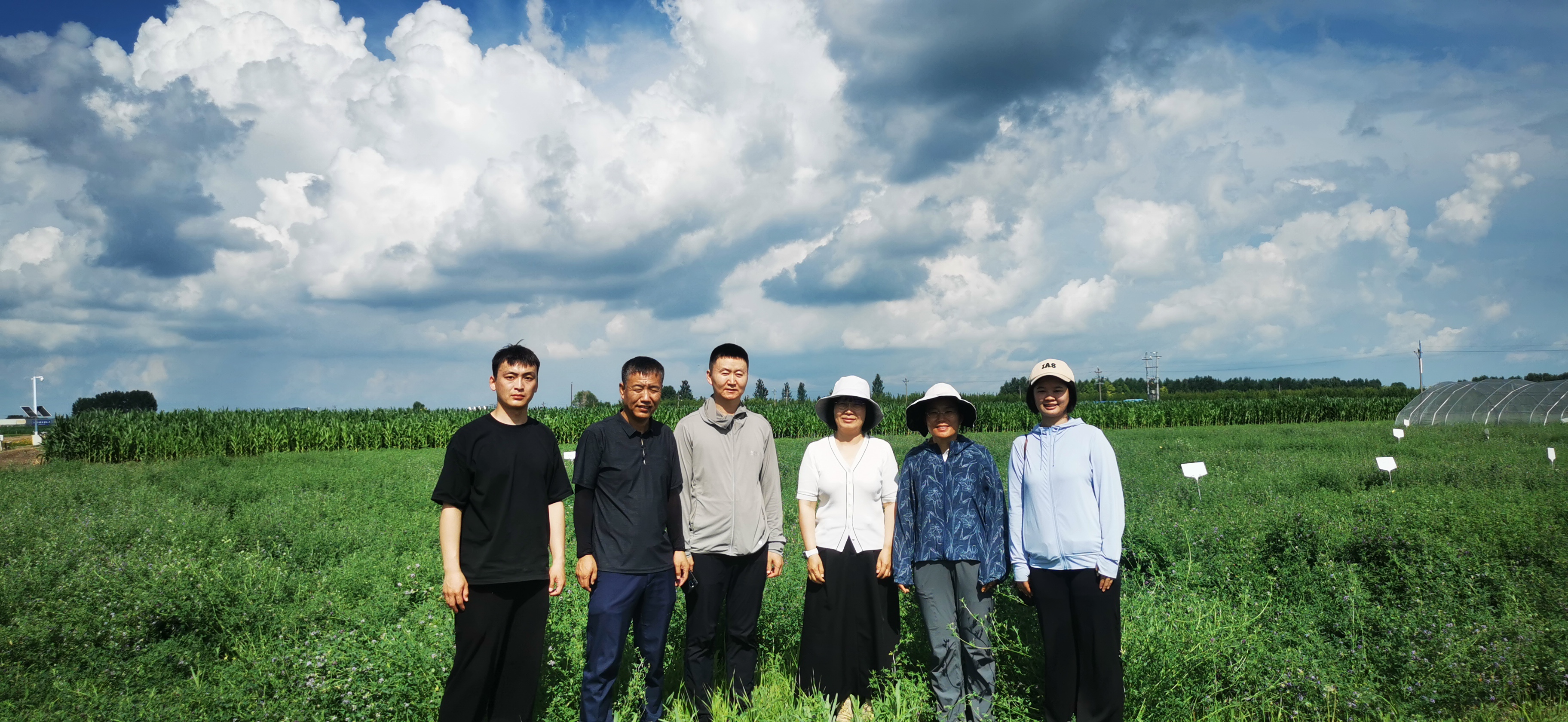会后,王学敏研究员专程前往安达苜蓿科研示范基地进行实地考察,在读博士18级草业员工蒋庆雪随行陪同。我系刘香萍教授、杨伟光教授详细介绍了当前公司苜蓿新品种选育、高产栽培技术集成及示范推广情况。王研究员对基地建设成效给予高度评价,并就苜蓿抗逆生理研究、水肥精准管理及机械化收获等环节提出了宝贵的技术建议,现场交流气氛活跃。