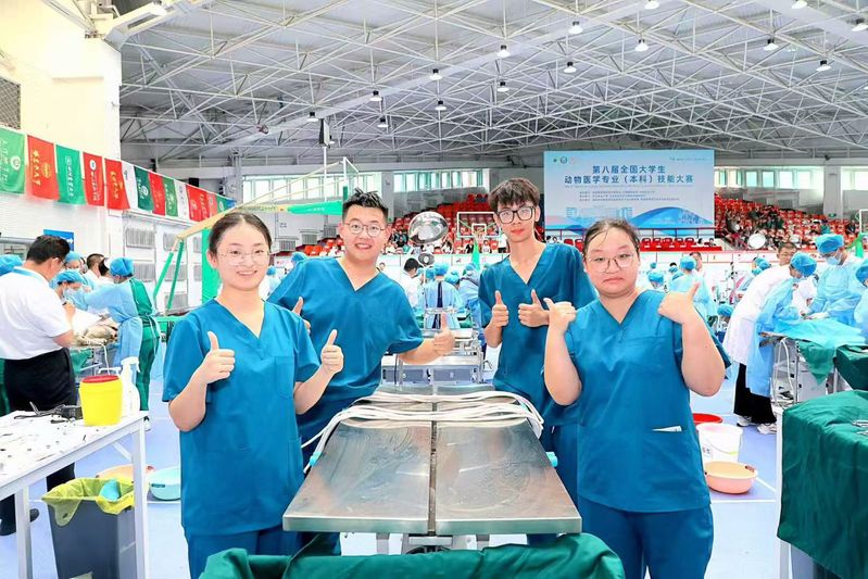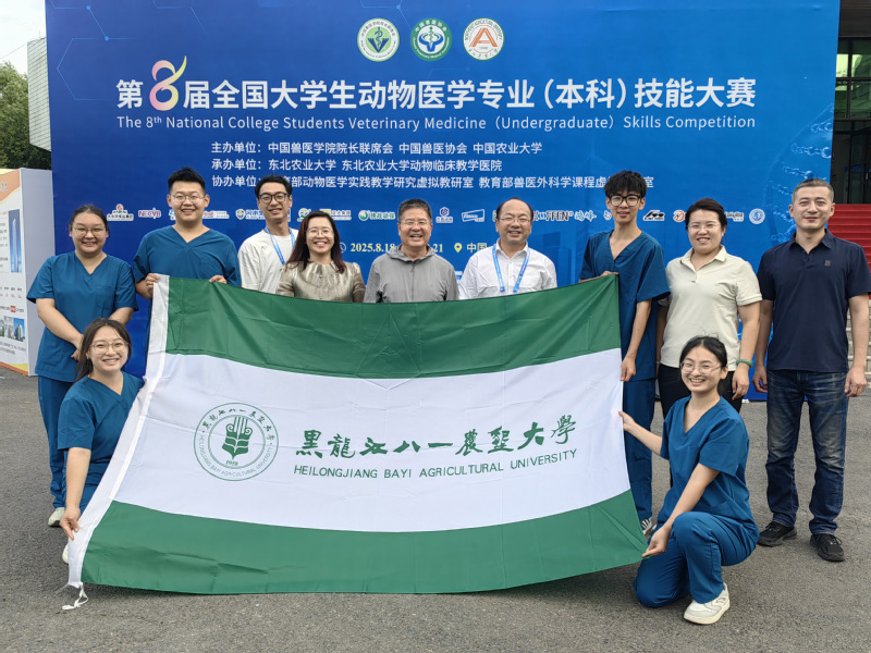 本届大赛由中国兽医公司经理联席会和中国兽医协会联合主办,东北农业大学承办,吸引了全国71所本科高校代表队参与角逐。由公司动物医学专业梁树轩、张小雪、万鑫、苏欣雨和吕亚欣五位同学组成的代表队发挥出色,凭借精湛的临床技能和稳定的临场表现,荣获团体特等奖,实现公司在该项赛事中的“三连冠”。同时,代表队还在“山羊瘤胃切开术”单项比赛中获得优异奖。